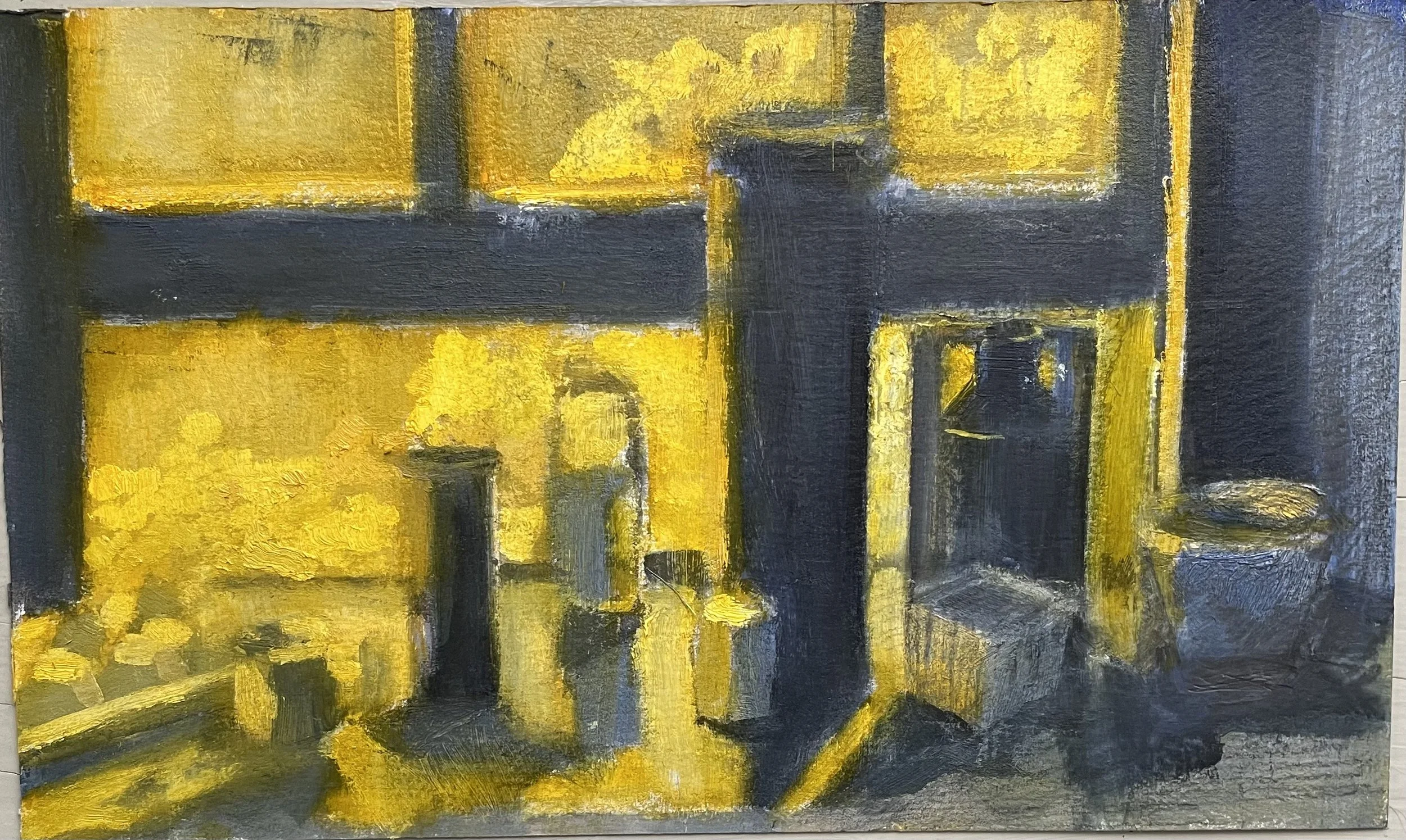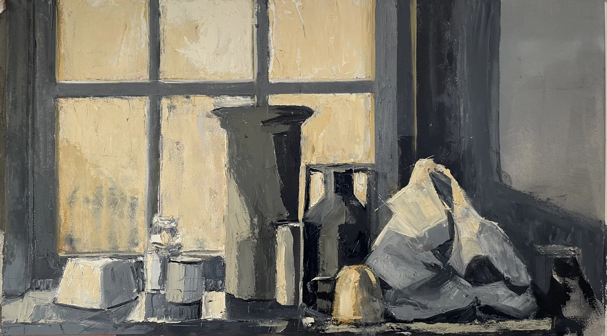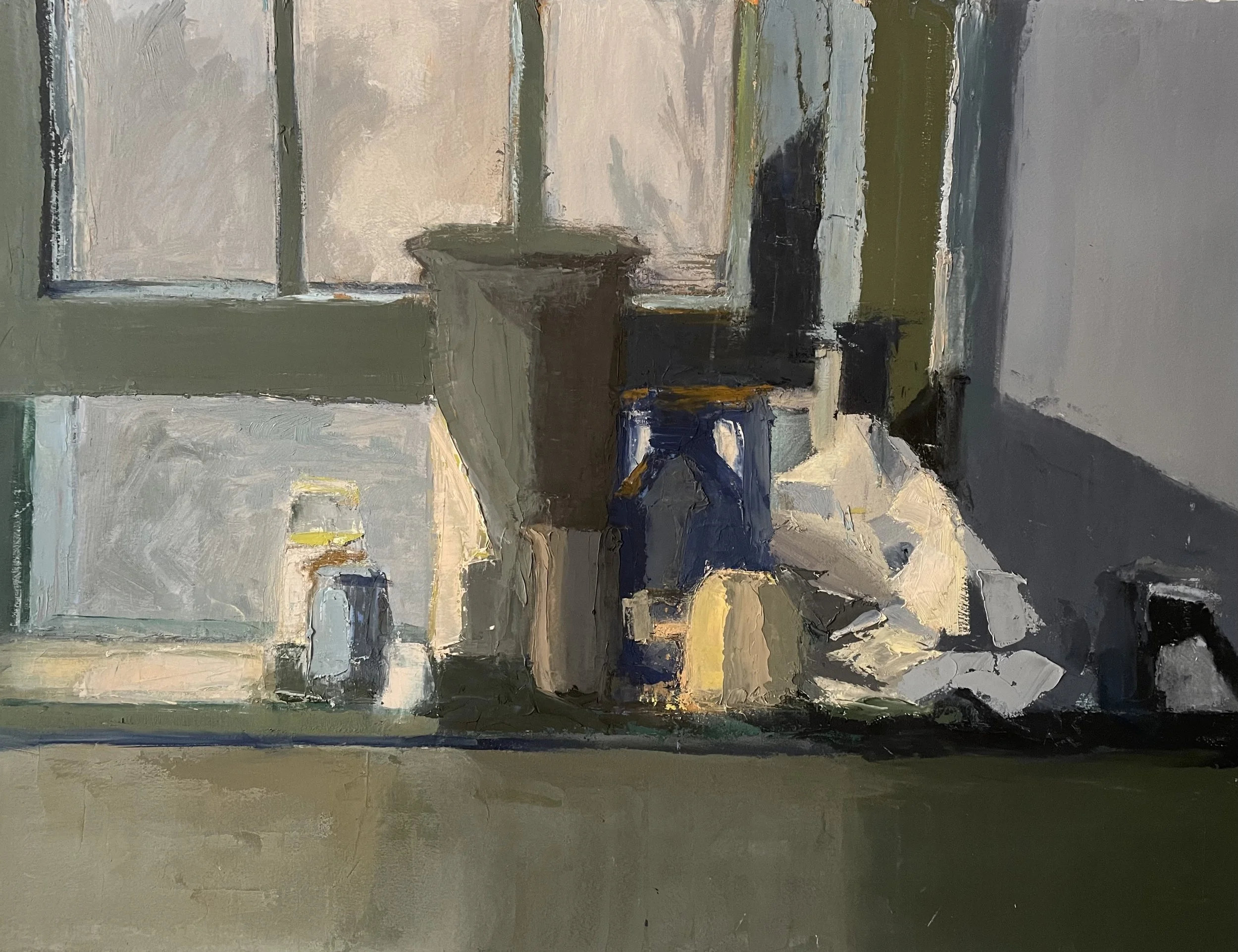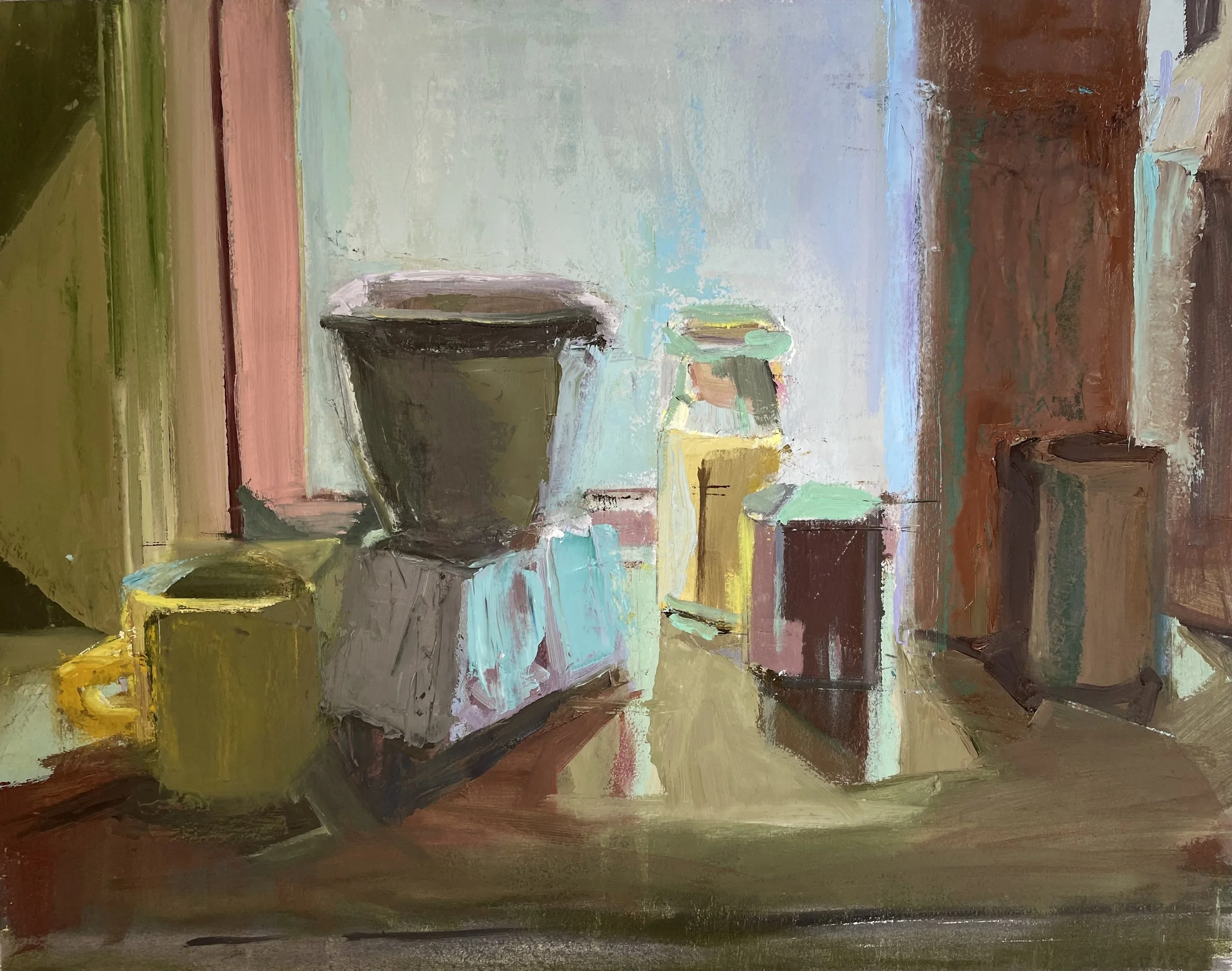 Oil pastel, graphite, colored pencil, wax crayon on textured acrylic paper