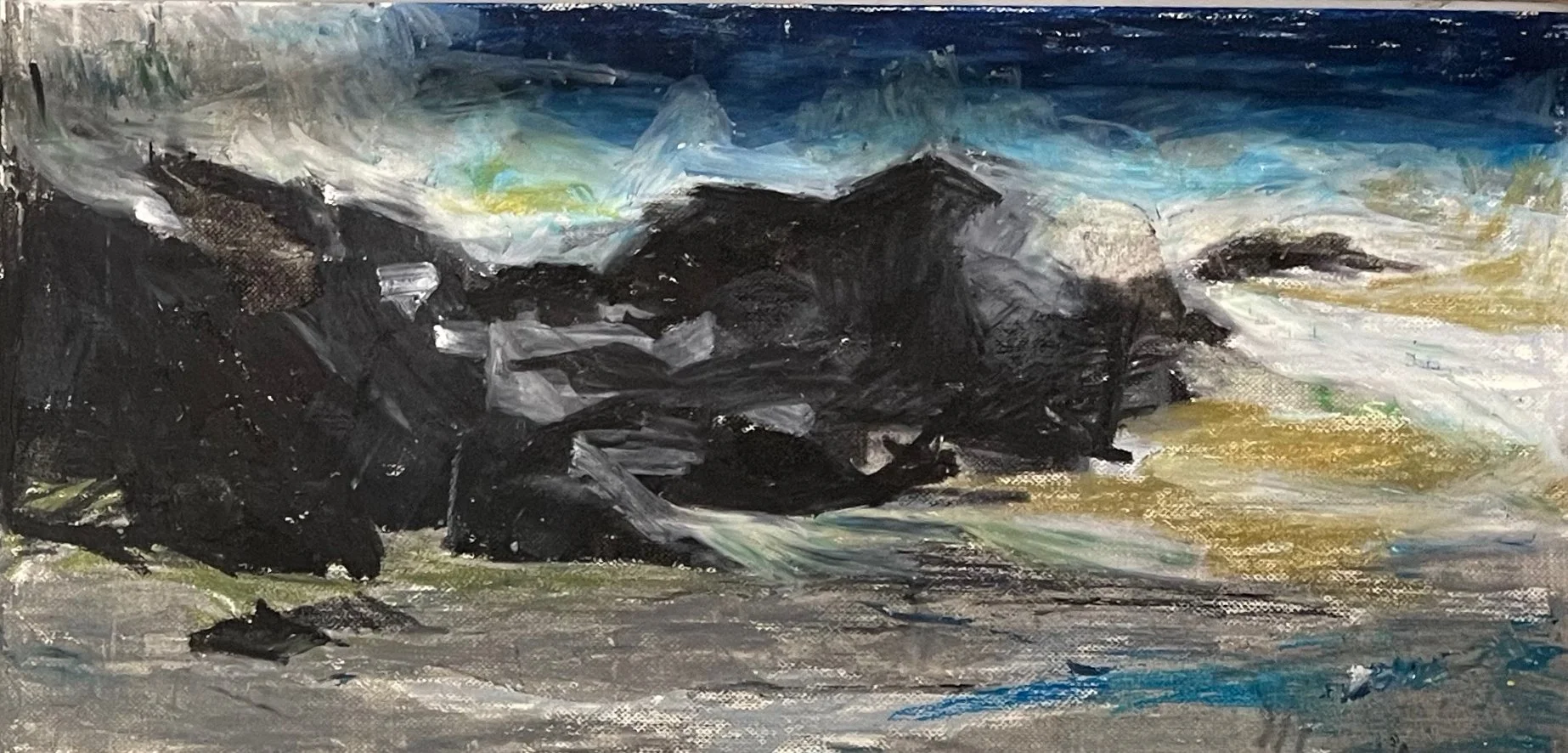 Oil pastel, graphite, colored pencil, wax crayon on textured acrylic paper